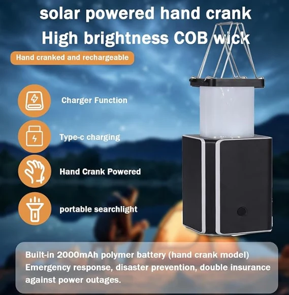 Lampu camping lantern lang light, darurat Camping Lampu lampu tangan tangan tangan. Yen sampeyan ora duwe pangisi daya lan ora ana srengenge, generator tangan iki cocog kanggo ngisi cahya.