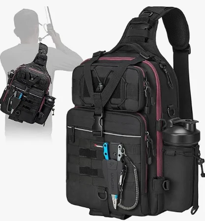 Tali bahu sing bisa dicopot nggawe gampang nggunakake tas iki minangka tas pundhak, tas ransel, tas dada, tas tackle fishing, utawa tas lelungan. Kanthi rong rodha rod kanggo nyekel rod, tali utama bisa ditambah nganti 51.2 '', dene tali digandhengake bisa ditambahi 36.2. '