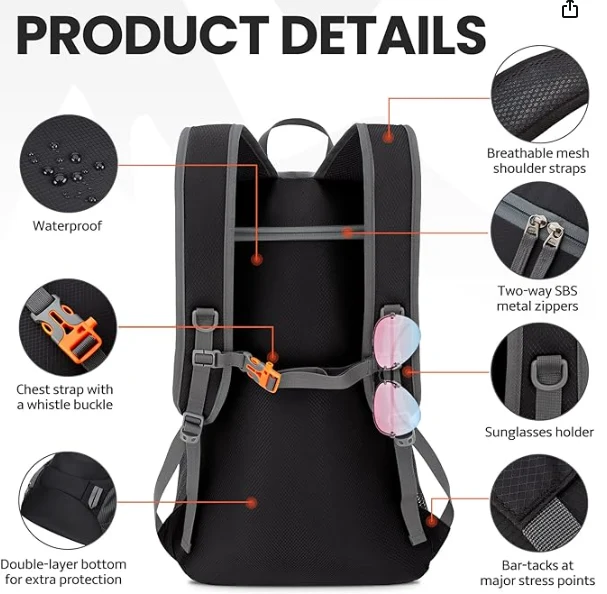 Backpack Folder Hiking anti banyu, klip dada kanthi karya sing wis disengaja kanthi sampurna kanggo nyebarake bobot bungkus lan tetep tetep lan pusat. A kudu duwe olahraga, hiking lan campingzejiang jiayu outdoor Products Co, Ltd nambah visibilitas sajrone kegiatan ruangan awan. Desain iki mesthekake sampeyan tetep katon kanggo wong liya, tambah safety nalika sampeyan lagi peteng sawise peteng